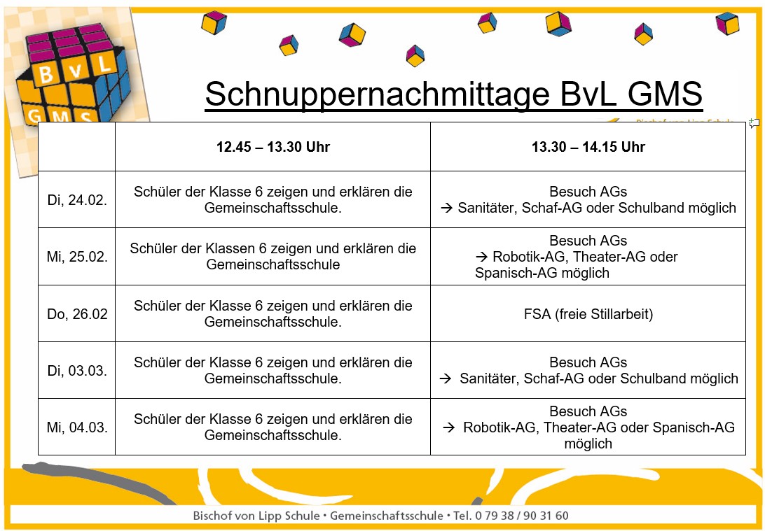 3. Schnuppernachmittage (Anmeldung unter bvl-gms@josefspflege.de)