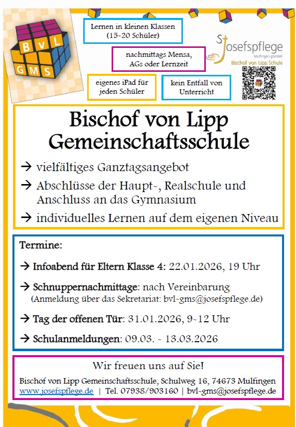 1. Informationsveranstaltung an der Schule: 22.01.2026, 19 Uhr